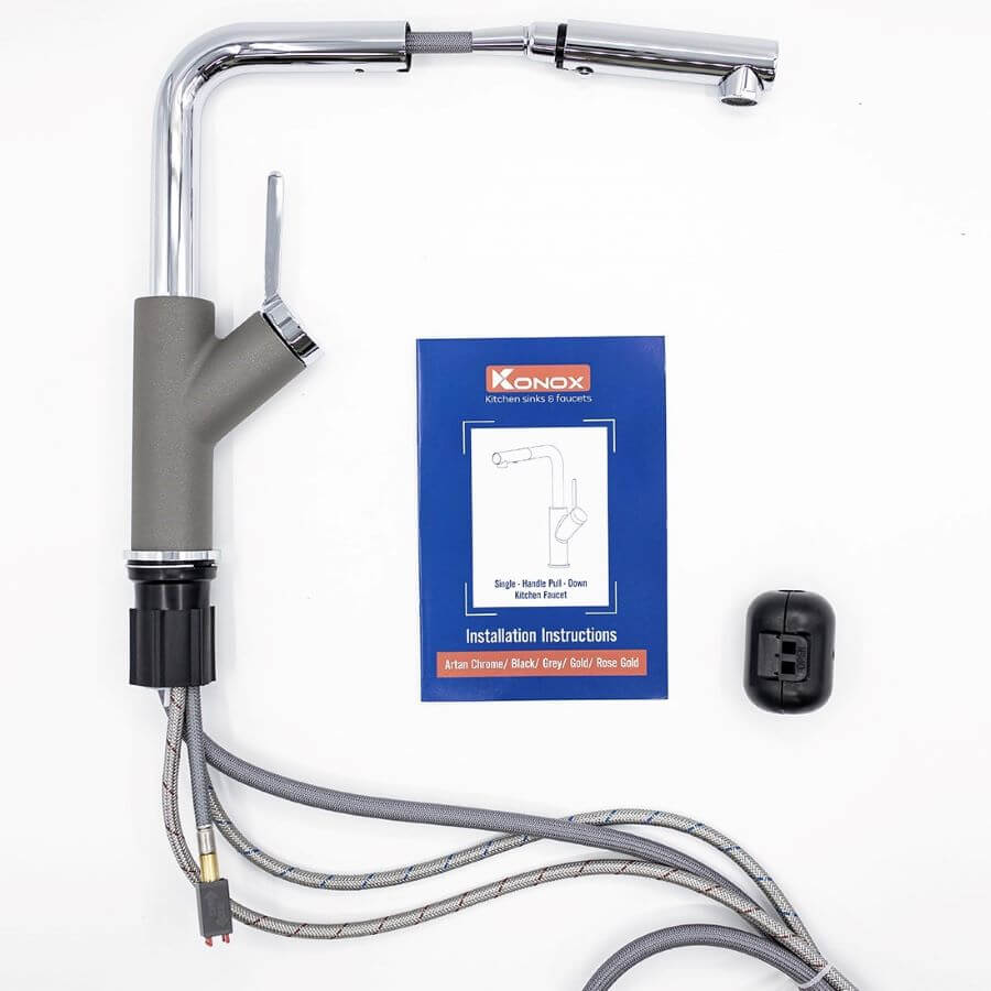 Vòi Rửa Chén Rút Dây Konox Artan Grey - Bảo Hành 5 Năm Chính Hãng